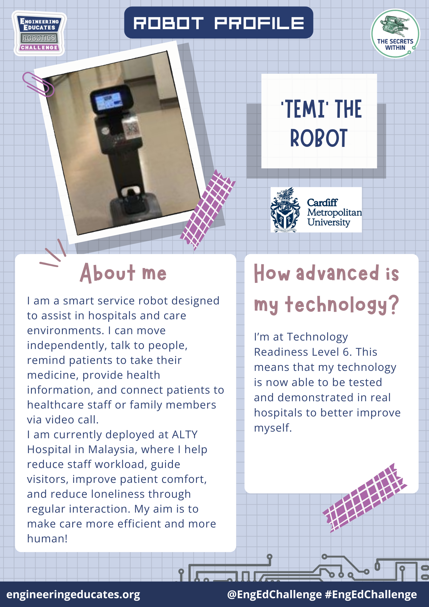 Temi assists in hospitals and other care environments, reminding patients to take their medicine, providing healthcare information, and connecting them with staff.