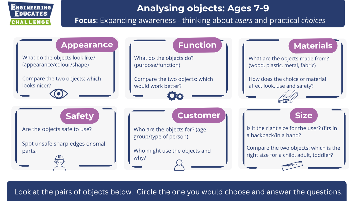 Support learners aged 7-9 to develop the skills to analyse and evaluate everyday products using a simple framework of questions.
